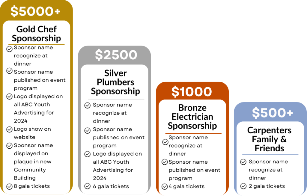 The second annual ABC Youth Community Gala is an opportunity for us to join forces with our local community. Donors are who make our program, events and future plans possible. Without you, we aren’t able to do what we do today. All proceeds will go towards our programs fund to continue our work in our local community.
